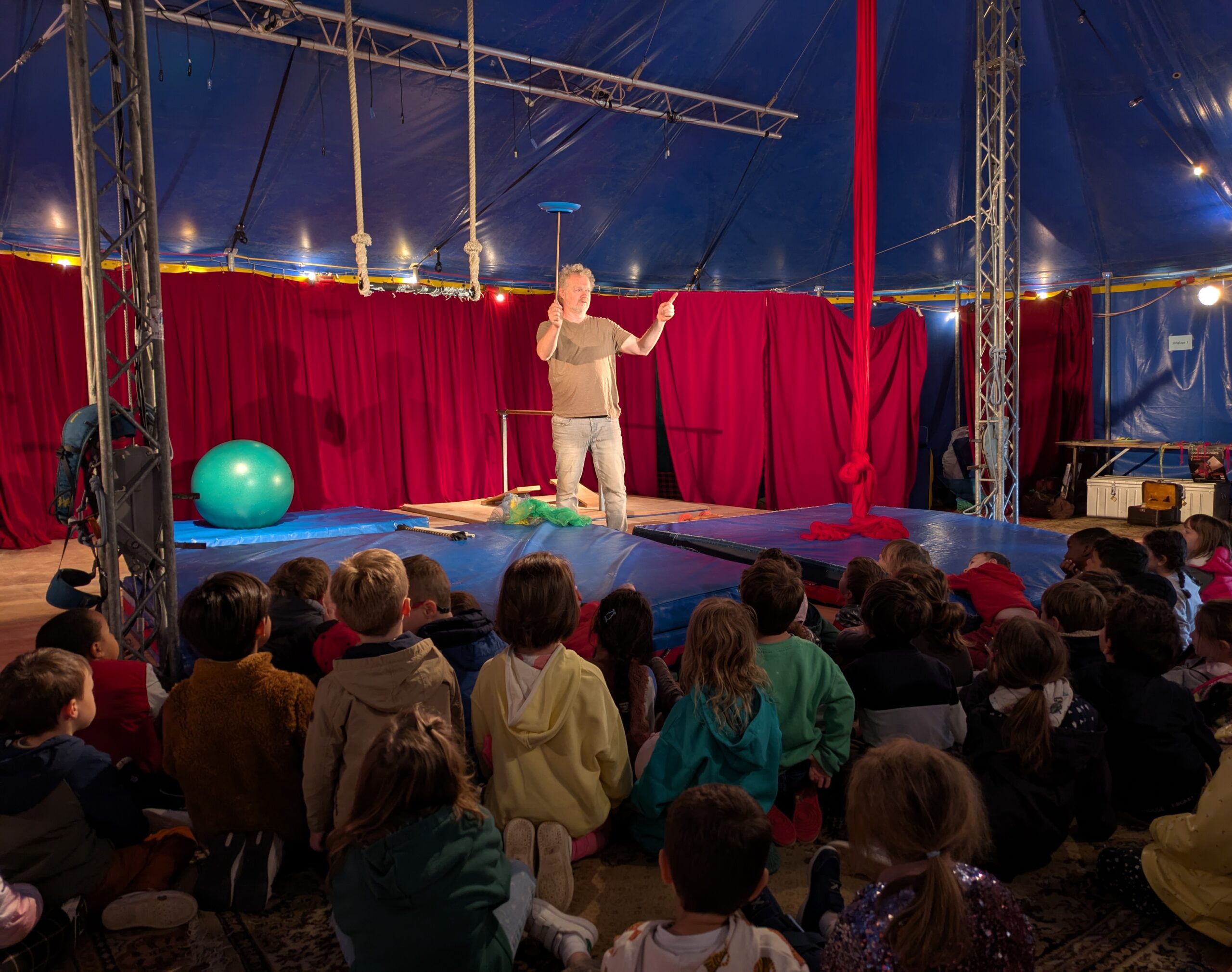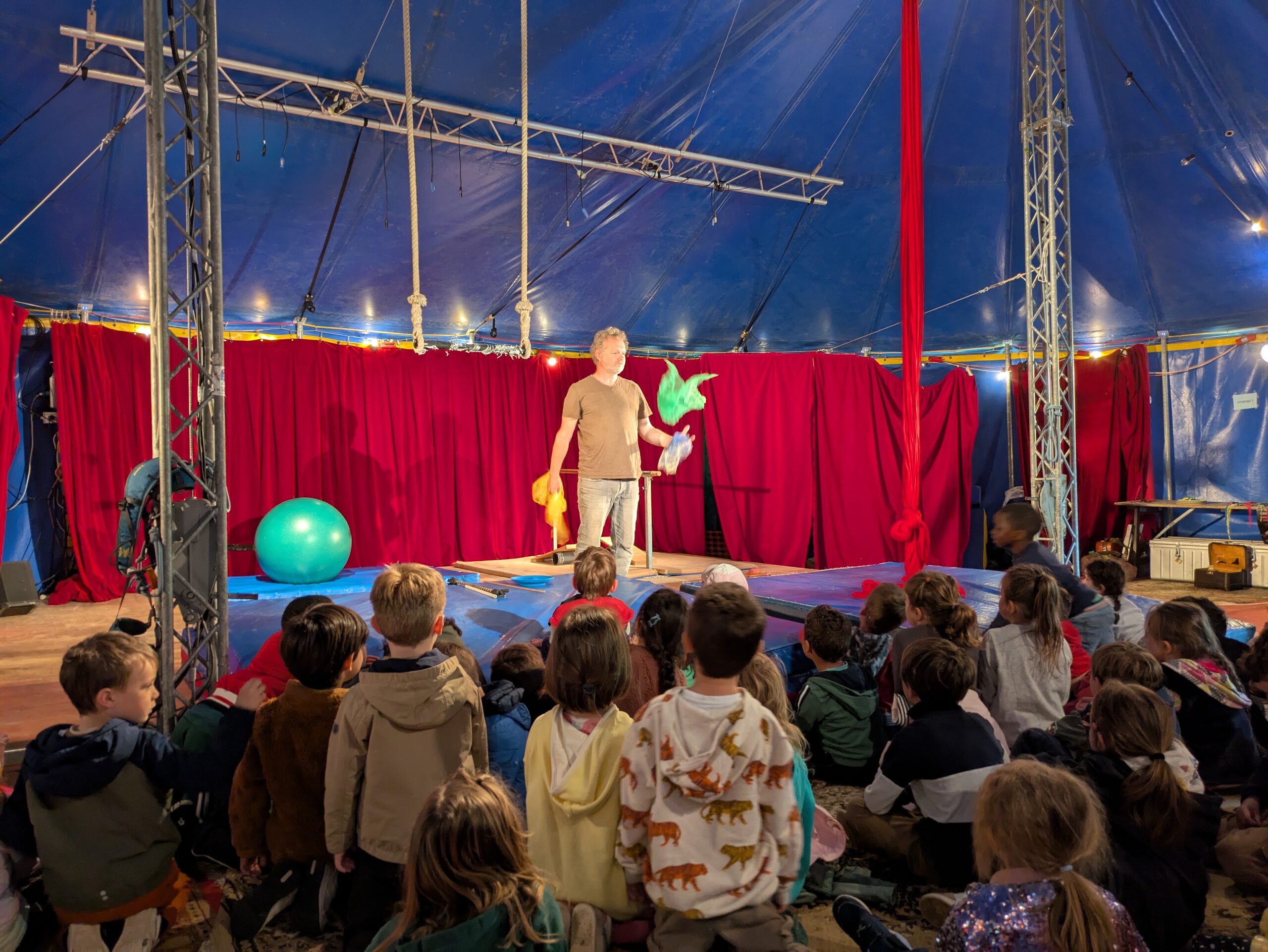Pour finir la journée nous proposons un temps d’échange sur le cirque, nos métiers, le chapiteau…
